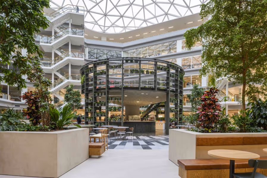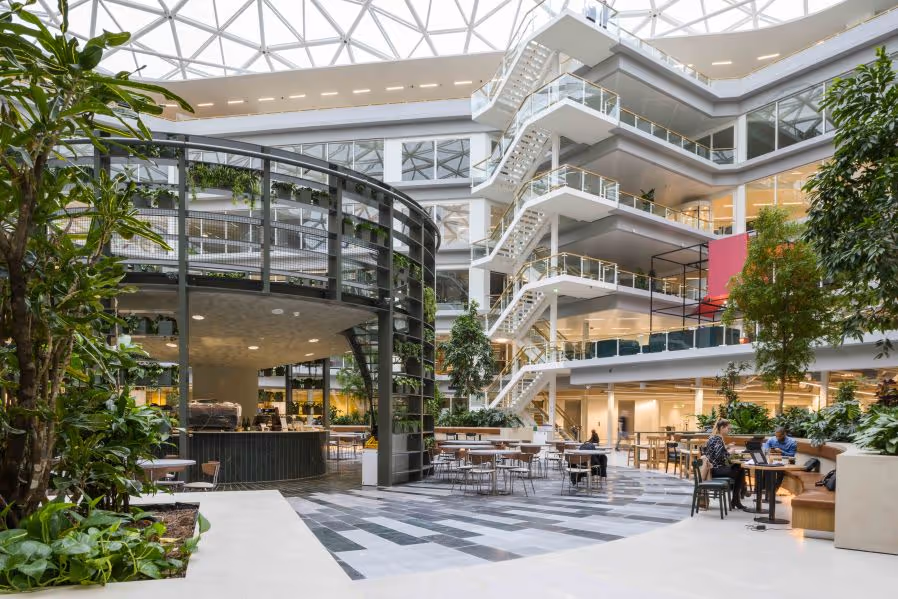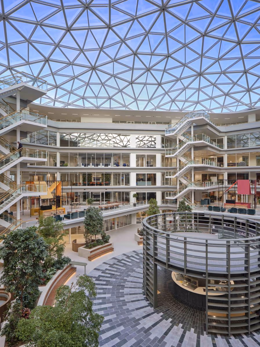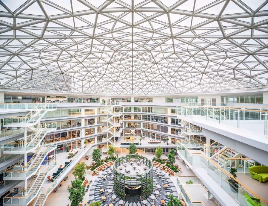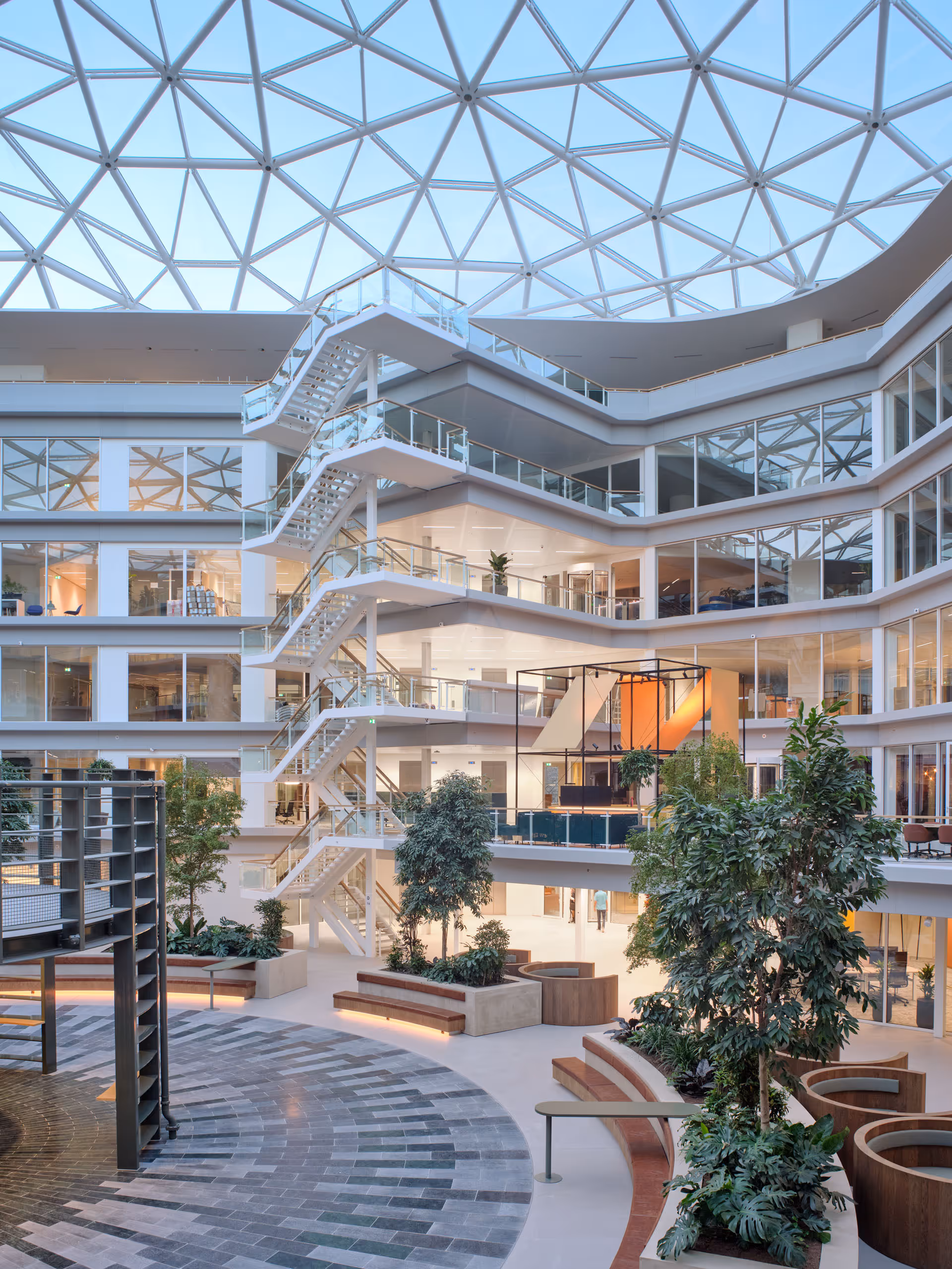 Durch den Einsatz von vernetzter LED-Beleuchtung und IoT-Technologie wird der Energieverbrauch drastisch gesenkt. Die Arbeitsumgebung wird so gestaltet, dass sie das Wohlbefinden und die Produktivität der Mitarbeiter:innen fördert. Sensoren werden genutzt, um die Gebäudenutzung in Echtzeit zu überwachen und zu optimieren. Zudem wird eine nachhaltige Infrastruktur geschaffen, die den Anforderungen des Pariser Klimaabkommens von 2015 entspricht.