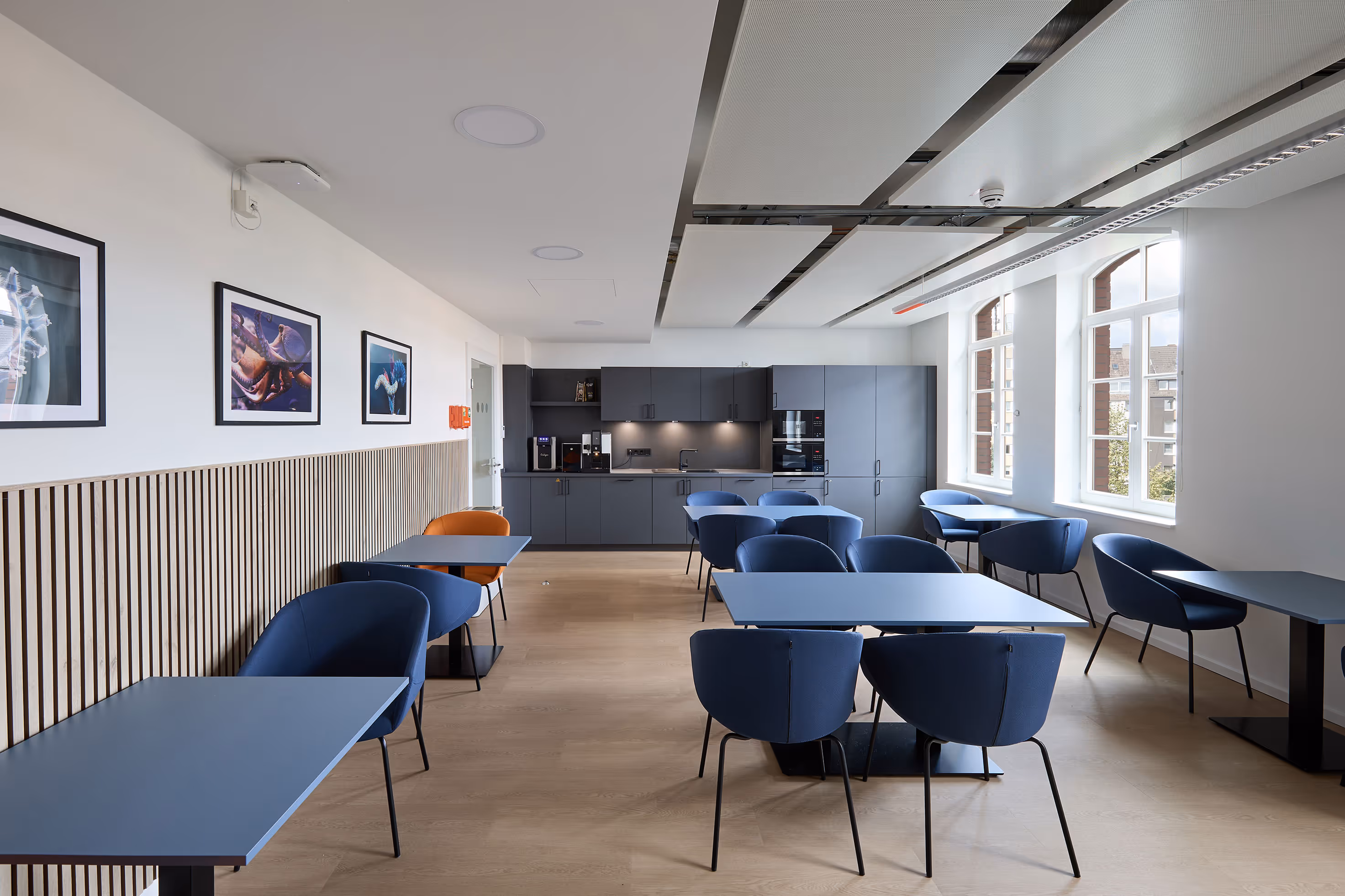 Auf dem Gelände der ehemaligen Ulanenkaserne in Düsseldorf-Derendorf entstand ein neues Wohn- und Gewerbequartier, welches historische Gebäude integriert. Eines dieser Gebäude ist das ehemalige Mannschaftsgebäude am „Platz der Ideen“. Die Tholl Gruppe hat dieses historische Gebäude umgebaut und modernisiert, um den Anforderungen eines neuen Mieters, einer internationalen Personalvermittlung, gerecht zu werden.