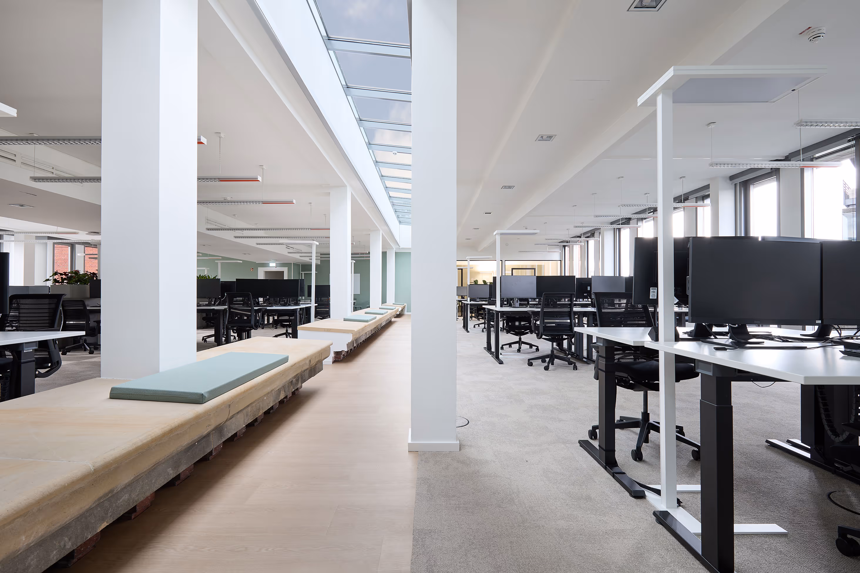 Der Umbau war wegen des Denkmalschutzes und der statischen Anforderungen eine große Herausforderung. Die alte Bausubstanz war nicht für moderne Büronutzung geeignet.