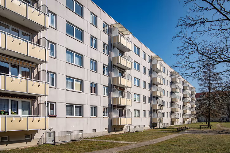 Die Mietshäuser der Genossenschaft sollten nach Fenster- und Heizungsaustausch auch hinsichtlich der Fassade energetisch ertüchtigt werden. Ziel war es, die Mieten niedrig zu halten und die Feuchte- und Algenprobleme an vielen Gebäuden zu lösen.